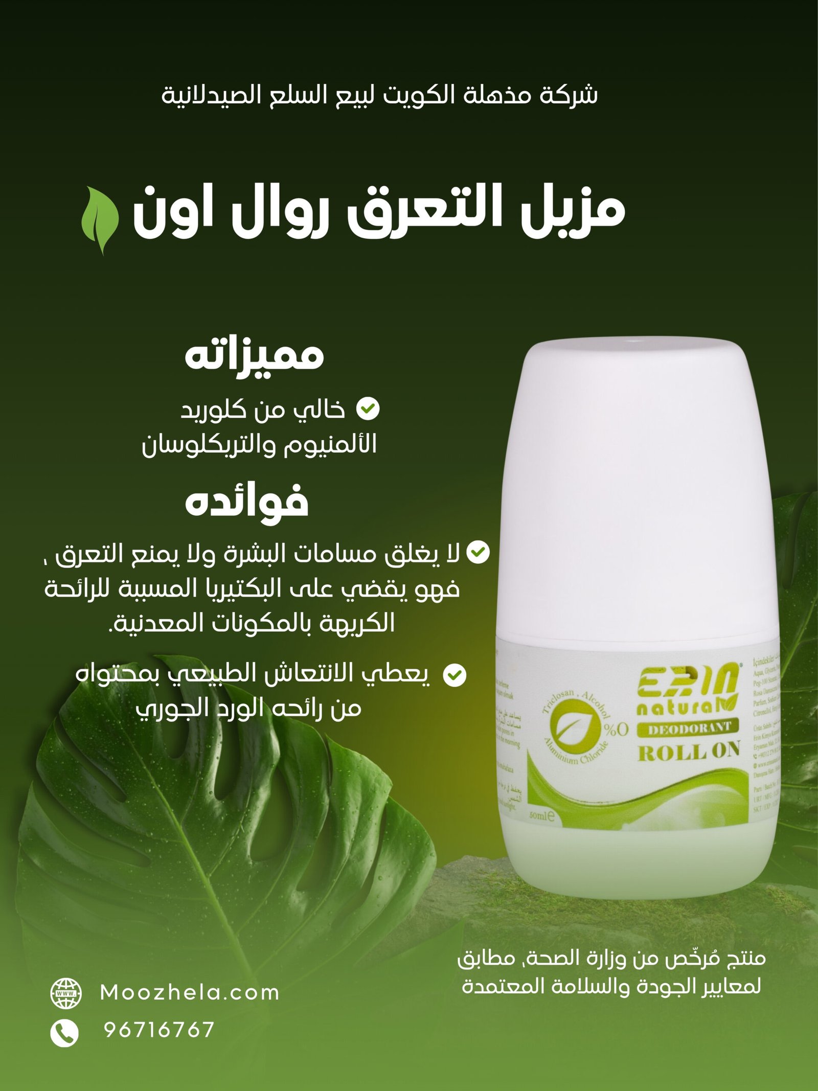 لا يغلق مسامات البشرة ولا يمنع التعرق، فهو يقضي على البكتريا المسببة
